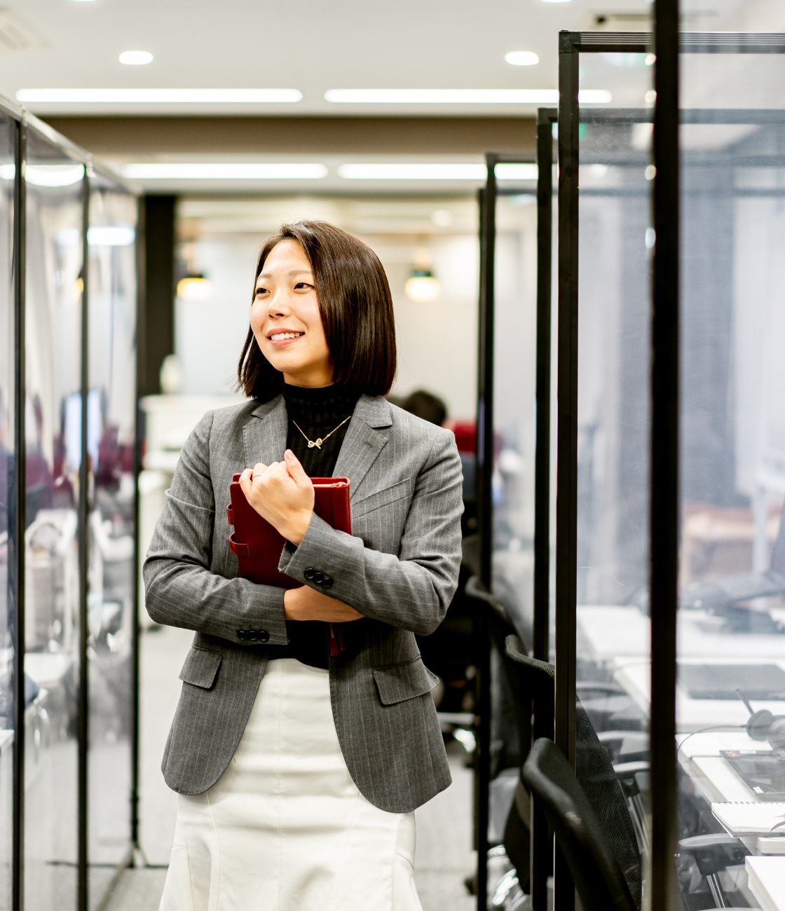 教えてください。財務・税務、法務・労務、業界理解・ビジネスモデル分析等、より深い知識を身につけ、一流のインサイドセールスとして1社でも多くの企業様を「M&Aを通じて元気にしたい」と思っています。その過程で、簿記2級や行政書士、中小企業診断士等仕事に活かせる資格取得も目標としています。また、よりM&Aのトークに深みと幅を持たせるべく、コンサルタントとお客様の元へ訪問し、初回訪問・候補先紹介・クロージングまで一気通貫でM&Aディールを体感したいです。